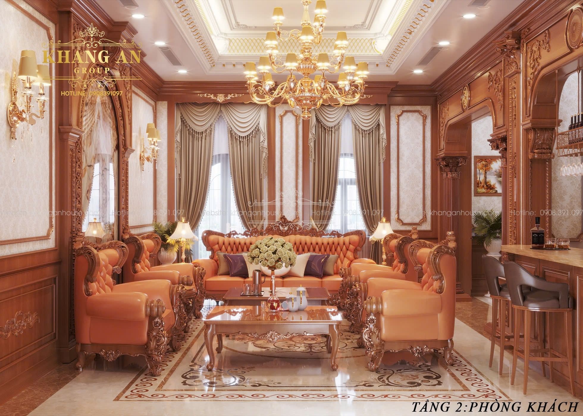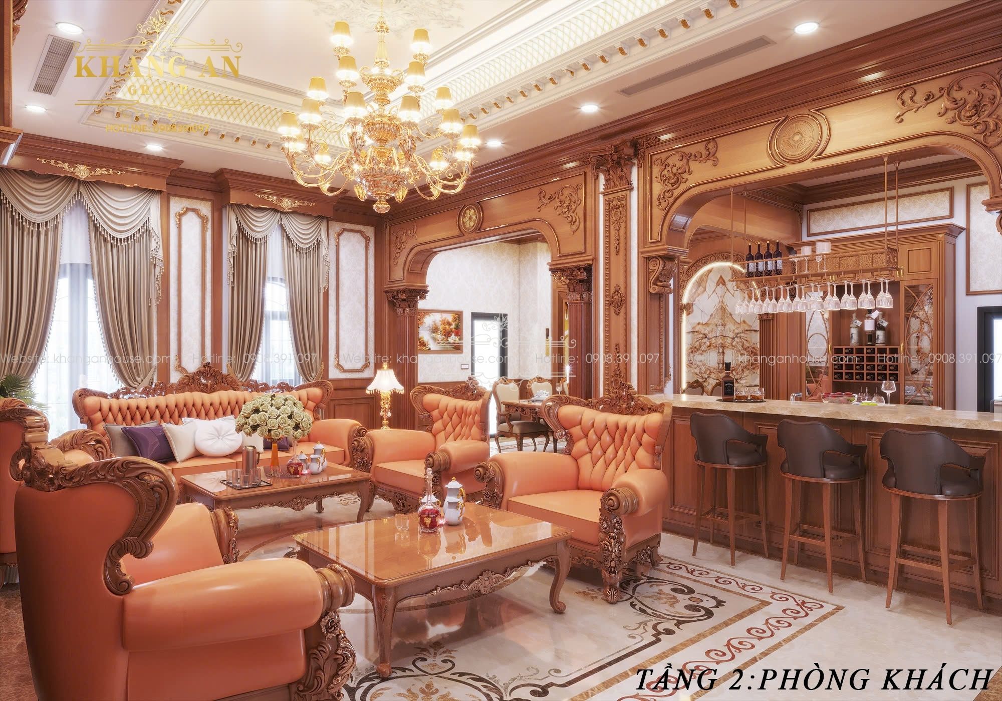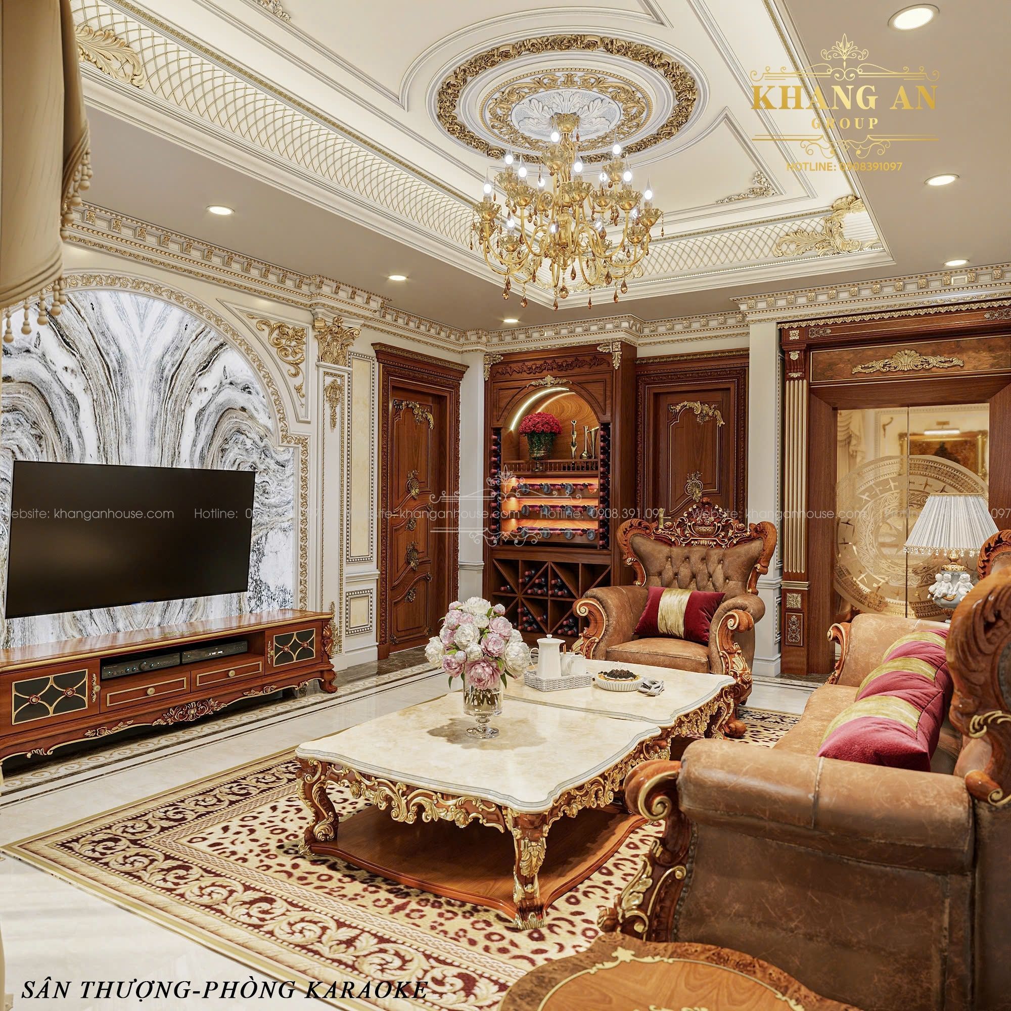Mọi chi tiết từ sàn, tường, trần cho đến đồ nội thất đều toát lên vẻ xa hoa, đẳng cấp, tạo ra một trải nghiệm ấn tượng cho bất kỳ ai bước vào. Điều này thể hiện qua việc sử dụng các vật liệu cao cấp, chi tiết mạ vàng, đồ nội thất tinh tuyển và hệ thống chiếu sáng.