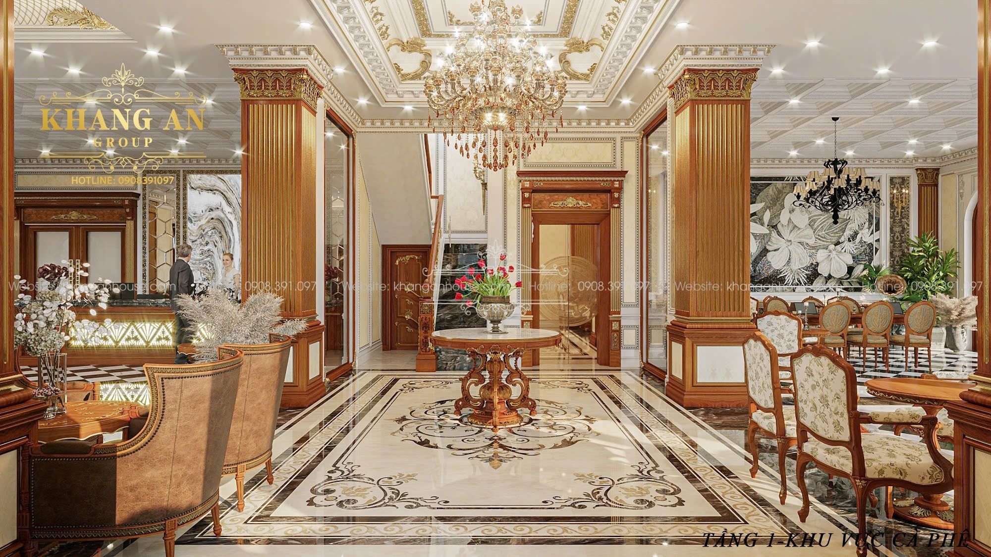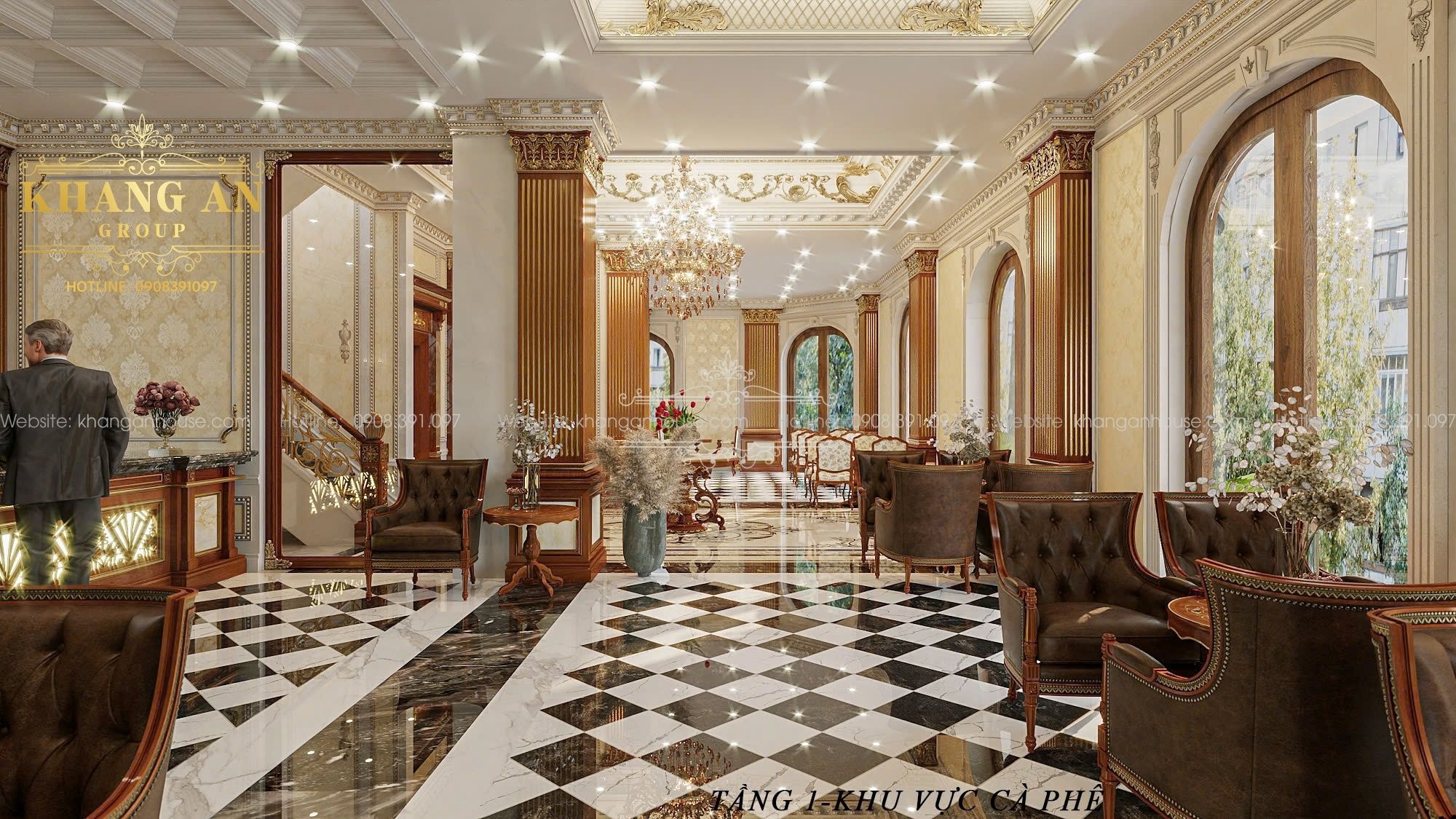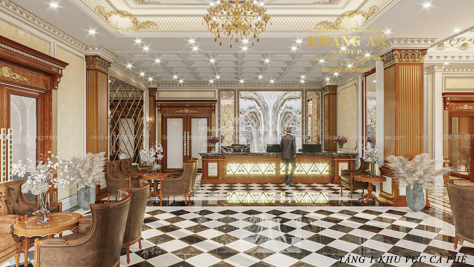 Điểm đặc biệt của công trình là dù phục vụ hai chức năng khác nhau, toàn bộ không gian bên trong vẫn có chung một ngôn ngữ thẩm mỹ, tạo sự liền mạch và đẳng cấp đồng bộ. Phong cách cổ điển mang hơi hướng hoàng gia chính là “sợi chỉ vàng” kết nối mọi không gian thành một chỉnh thể thống nhất và sang trọng.
